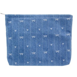 PAZIMIIK Makeup Bag Large Cotton Zipper Pouch for Purse Travel Canvas Make Up Organizer for Women Cosmetic,Jean Blue