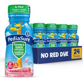 PediaSure Grow & Gain with Fiber Nutritional Shake for Kids, 7g Protein, 3g Fiber to Support a Healthy Digestive System, DHA Omega-3, Non-GMO, Strawberry, 8-fl-oz Bottle, Pack of 24
