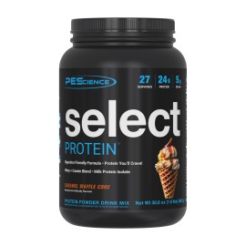 PEScience Select Protein Powder, Whey and Casein Blend, Clean Protein Powder for Women and Men, Low Calorie, Low Carb, Keto Friendly, Gluten Free - Caramel Waffle Cone - 27 Servings