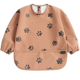 PewinGo Baby Bib with Long Sleeves Bib & BLW, Machine Washable & Soft and Skin-Friendly Material, Coverall Bibs for Baby Feeding, Waterproof and Easy to Clean, for Baby Infant Toddlers (Orange)