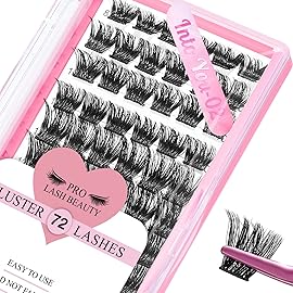 Cluster Lashes 72 Pcs Lash Clusters DIY Eyelash Extension Individual Lashes Into You-02 D-14mm Thin Band Easy to Apply at home Lashes