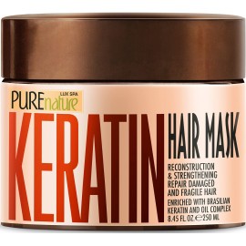 Keratin Hair Mask Say goodbye to split ends, dull hair and limp locks. Pure Nature Lux Spa nourishing salon hair treatment unleashes your hairs true potential and is sure to turn heads. With keratin to unleash the shine and protection that your hair naturally deserves as well as hydrolyzed collagen for moisture and chamomile essence for a touch of ..