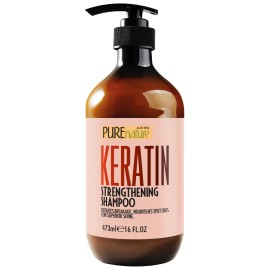 PURE NATURE LUX SPA Keratin Shampoo - Sulfate Free, Strengthening Formula - Repair Damaged and Dry Hair - Products for Women and Men - For Thinning Hair - 16 Fl Oz