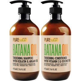 Batana Oil Shampoo and Conditioner Set - Thickening, Sulfate Free Formula for Women and Men - Volumizing, Moisturizing, Professional Salon Care Products for Fine, Thinning Hair - 16 Fl Oz (Pack of 2)
