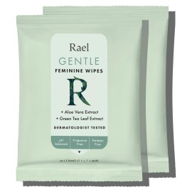 Rael Feminine Wipes, Flushable Wipes pH Balanced - Travel Size, All Skin Types, Paraben Free, Daily Use (10 Count, Pack of 2)