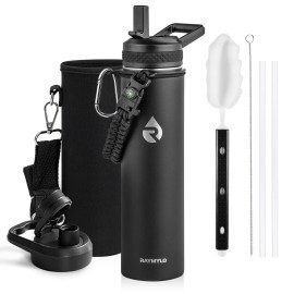 RAYMYLO Insulated Water Bottle 24oz, Triple Wall Vacuum Stainless Steel (Cold for 48 Hrs, Hot for 24Hrs), Leak Proof & Non-BPA, 24oz Hydro Water Flask with Paracord Handle & Straw Spout Lids
