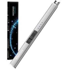 RAYONNER USB Rechargeable Electric Candle Lighter Windproof Plasma Arc Lighter with Flexible Neck for Deep Jars, BBQ, Camping Flameless Fire Starter Christmas Stocking Stuffers Gift (Silver)