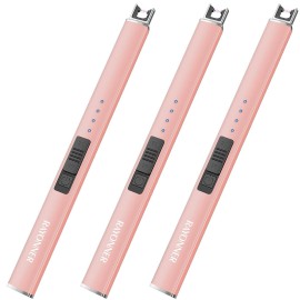 RAYONNER Electric Candle Lighter - USB Rechargeable, Flameless Plasma, Windproof, Pocket Size for Candle, Cooking, BBQ, Firework (Rose Gold, 3 Pack)