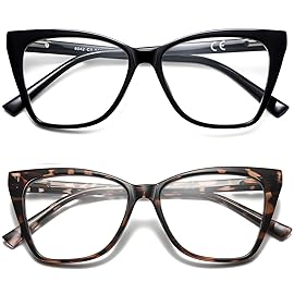 - Size: Lens Width: 50mm (1.97") | Lens Height: 40mm (1.57") | Bridge Width: 18mm (0.71") | Frame Width: 145mm (5.7") | Arm Length: 140mm (5.51"). | Lady's Stylish Oversized Reading Glasses: Beautifully crafted big frame cat eye shape reading glasses for people who loves fashion. The fashion design of the large and square rims is suitable for all face shapes.Whether you're walking down the street, work, or read, this design will make you more attractive. | Anti Blue Light Glasses: Our anti-blue light lens added blue light factor into the lens base material to block blue light more effectively.You don't need to worry that the long-term use or scratches will reduce the anti-blue light effect. | High Quality Frames and HD Lenses: Flexible spring hinges and lightweight frames ensure a comfortable fit. HD lens, makes your vision clearer.Each pair of readers glasses is carefully selected to ensure quality! | No Risk to Try: Convenient Set of 3 blue light filter glasses & 2 leather case & 1 cleaning cloth. We believe in our products and hope to sell better anti-blue glasses. If you have any questions, please contact us and we will provide return or exchange service.
