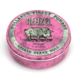 REUZEL Pink Grease Pomade, Strong All Day Hold, Oil-Based Styling Wax, Medium Shine, Easy To Wash Out, For All Hair Types