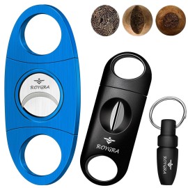 roygra Cigar Cutter Set (3 Pack), Cigar Accessories for Men - Stainless Steel Guillotine, Enlarged V-Cut Fit All Cigars, Punch Tool - Smoking Accessories, Portable Sharp Clean Cut - Black