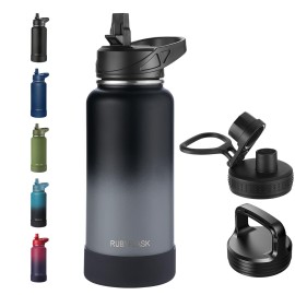 RUBYFLASK 32oz Insulated Water Bottle with Straw, Stainless Steel Metal Vacuum Water Flask, Large Thermal Water bottle with Leakproof 3 Lids for Travel, Camping, Gym Sports Black Gray..