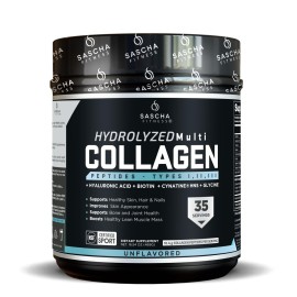 SASCHA FITNESS Hydrolyzed Multi Collagen Peptides Tipes 1,2 & 3 |Hyaluronic Acid|Biotin |Cynatine HSN|Vitamin C & E |for Hairs, Skin & Bone Support| Unflavored