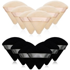 12 Pieces Cosmetic Powder Puff,2.76 inch Portable Soft Sponge Setting Face Puffs,Triangle Velvet Powder Puff with Ribbon Band Handle for Loose Powder Body Powder Makeup Tool(Black,Nude)
