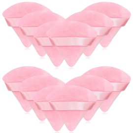 12 Pieces Pink Cosmetic Powder Puff,2.76 inch Portable Soft Sponge Setting Face Puffs,Triangle Velvet Powder Puff with Ribbon Band Handle for Loose Powder Body Powder Makeup Tool
