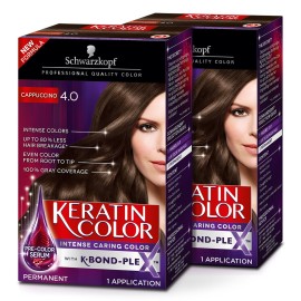 Schwarzkopf Keratin Color Permanent Hair Color Cream, 4.0 Cappuccino (Pack of 2)