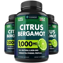 Secret Element 3 Pack Citrus Bergamot Extract 1000mg, Supplement for Heart, Immune System Support, and Healthy Aging - Pure 360 Vegan Capsules