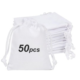 Shintop 50 Pcs white velvet drawstring pouch, sturdy and well made, a reusable alternative to other packaging - great presentation for a gift. Perfect for any small item and will be loved by each recipient. Main Features: Our little gift bags are made of velvet fabric, well sewn and firmly seamed, They each have a satin drawstring to keep contents..