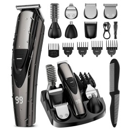 SHPAVVER Beard Trimmer for Men: Professional Barber Hair Clippers - 12-in-1 Cordless Grooming Kit - Waterproof Electric Razor with Turbo Speed & Precision Blades, Black