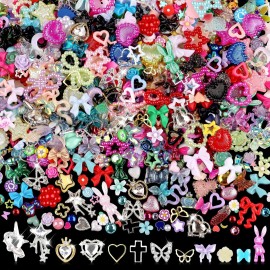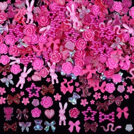 Sinyanail 300 Pieces 3D Mix Assorted Resin Nail Charms Hollow Pearl Heart Nail Art Charms Gems Gummy Bear Star Heart Flowers Acrylic Beads