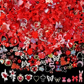 300pcs Nail Art Charms Kit,Over 100pcs Mixshape Resin Gems and 100 pcs Mixed Flatback Nail Rhinestones Pearls with Over 100pcs Sequins for Women\'s Manicure Making DIY Crafts (17-300-red)