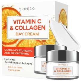 Skin 2.0 Vitamin C & Collagen Face Moisturizer - Hydrating Anti Aging Cream for Smooth & Radiant Skin, Firms & Revives Dull Complexion - Dermatologist Tested, Korean Skin Care, Clean Beauty - 2 Pack