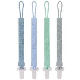 4-Pack Silicone Pacifier Clips with One-Piece Beads for Baby Boys and Girls - Flexible and Rust-Free Holders for Teething Relief and Baby Essentials, Safe for Newborns (Blue)