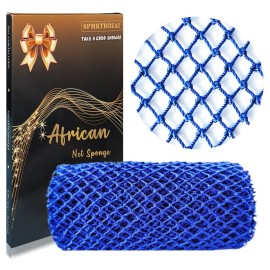 SPMKTBOZAI African Net Sponge Authentic, African Exfoliating Sponge Real African Net Black Owned, African Bath Sponge Back Scrubber, Body Exfoliator Shower Bath Accessories (Blue)