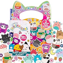Get ready for squishy sticker fun with the Original Squishmallows Puffy Sticker Playset! This reusable kit comes with over 30 soft, squishy puffy stickers featuring fan favorites like Cam, Wendy, Pyle, Woxie, Luanne, Mirren, and more mini Squishmallows! Mix and match them on the double-sided play scene to create endless Mallow Day adventures, from ..