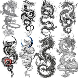 TASROI 8 Sheets Cool Dragon Temporary Tattoos For Men Women Adults, Black Realistic Dragon Tattoo Sticker Half Arm Sleeve, Waterproof Tribal Totem Fake Tattoos That Look Real and Long Lasting Set Kit