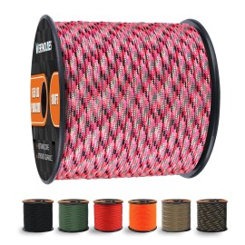 - PARACORD 550: Paracord Type III (550 lb) has a nylon core. Color: Camo. Length - 100 feet (30.5 m). Made in accordance with MIL-SPEC. Available in 40 colors options. Packaged according to length: 50, 100, 200 or 1000 feet. | STRONG & DURABLE: Paracord Type III has 550 lb (249 kg) min strength; 32 strand sheath structure, 7 core yarns each made of 3 twisted nylon fibers. Thickness: 5/32-inches (4mm). Manufactured according to Mil Spec C-5040H. | HIGH-QUALITY materials used to manufacture our paracord makes it durable and resistant to damages caused by weather conditions. Sun, rain or snow, it is made to serve you long. UV and fade resistant. | MULTIPURPOSE: Versatile, flexible and of a great strength, para cord is very multi-functional. It is used as a tent cord to set up tents, safely secure hammock or hang heavy items such as bikes and kayaks in your garage or basement. Serves as a safety rope in emergency situations. Ideal for crafting custom accessories: lanyards, bracelets, dog collars, keychains, belts, wrapping axes, knives, tools & other DIY projects. | MUST-HAVE: A Must-Have for Camping, Hiking, Fishing, Boating, Kayaking, other outdoor activities and sports. The best gift idea for men and women who love sports, outdoors & DIY craft projects, for boy and girl scouts. Travel gear & equipment, EDC.