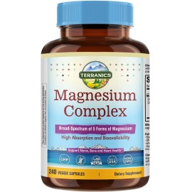 Terranics Magnesium Complex Broad Spectrum Formula Optimal Absorption – 1 Bottle of 240 Veggie Capsules, 2 Capsules per serving – Product Overview Supports bone, and heart health*Promotes occasional relaxation of mind & body*Features 5 premium forms of magnesium for optimal bioavailabilityTerranics Magnesium Complex is a highly bioavailable formula..