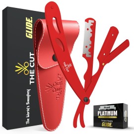 The Cut Factory- Hair Cutting Scissors & Straight Razor Barber Kit with Leather Pouch - Professional Hair Scissors, Barber Scissors & Razor with 20 Replaceable Blades