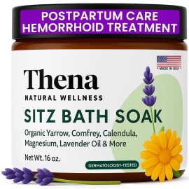 Best Organic Sitz Bath Soak Postpartum Care & Post Partum Essentials, Natural Hemorrhoid Treatment for Women & Moms with Epsom Dead Sea Salt Witch Hazel, Sitz Bath for Toilet, Thena