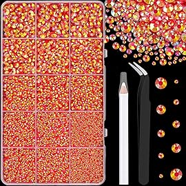 PACKAGE CONTENT -- Include 1 box with 15 grids, featuring a variety of sizes, approx. 16000 pcs bling-out resin rhinestones (Orange AB). 1 tweezers and 1 pickup pen are included for easily picking up of rhinestonesTIPS FOR USE -- Non-hot fix flatback gemstones require adhesive for crafts, or artwork design. We recommend using B7000 rhinestone jewel..