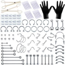 Get ready for all your body piercing needs with this value pack of 110 professional piercing tools! Whether you\'re looking to pierce your nose, ear, tongue, septum, lip, labret, belly button, navel, cartilage, tragus, helix, daith, rook, or eyebrow, this kit has got you covered. All piercing jewelry is made of high-quality 316L stainless steel, en..