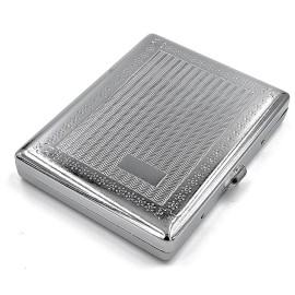 Retro Cigarette Case Victorian Style Metal Holder for Regular, King and 100\'s Size Credit Card Holder Pocket, Large Grooved Pattern RFID Protective Security Wallet (Grv-L100 Silver)