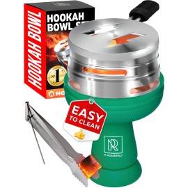 Premium Green Silicone Hookah Bowl Set - Universal Phunnel Hookah Head Bowl for Perfect Heat Management - Durable, Easy-to-Clean Hookah Top with Tongs - Shisha Bowl for Smooth Airflow & Max Flavor
