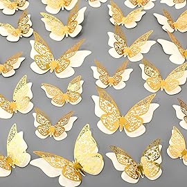 - Reliable Butterfly Wall Decor: the package contains 120 pieces 3D butterfly window decals in 2 different styles, 60 pieces for each style, these butterfly stickers are made of paper, and safe to use, nice for decorating your home, gradient and dazzling colors will change with different angels, creating a romantic and dreamlike atmosphere | 3D layered design: there are 2 kinds of butterfly mural decals, including simple butterfly shaped wall decals and delicate hollow butterfly wall decors, these beautiful decals can be combined to make layered butterfly wall decorations and create 3D effects, adding adorable and charming for your room | Vary in size: these 3D butterflies wall decals come in 3 sizes, which are approx. 10 x 6.6 cm/ 3.94 x 2.6 inches, 8 x 5.3 cm/ 3.15 x 2.09 inches, 6.5 x 4.2 cm/ 2.56 x 1.65 inches, different sizes combinations make the overall of your butterfly room decoration be layered and cute | Easy to apply: these classic paper butterfly wall stickers look 2D in the package but you have to fold slightly to create a 3D effect, simply stick with double-sided adhesive tape, then DIY the shape by yourself; Please clean the smooth surface before sticking them on | Wide range of applications: these hollow butterfly wall stickers are warm and full of dreamy breath, very suitable for decorating baby room, bedroom, living room, wedding party, nursery, dormitory, birthday party, retail store and so on; It will be fun to DIY wall stickers with your family or friends