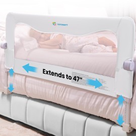 TotCraft MiniFlex Adjustable Length & Height Bed Rail for Toddlers - 35.5 or 47 Two Fixed Lengths,Fits Twin, Full & Queen Beds - 14 Height Levels - ASTM Certified Safety Guard Rail for Kids (White)