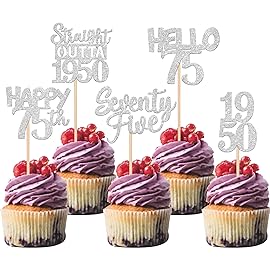 30 PCS 75th Birthday Cupcake Toppers Glitter Seventy Five Happy 75th Straight Outta 1950 Cupcake Picks for Cheers to 75 Fabulous 75th Birthday Anniversary Party Cake Decorations Supplier Silver Perfect for happy 75th bithday theme party, straight outta 1950 theme party, 75th wedding anniversary theme party,cheers to 75 years theme party cupcake dec..