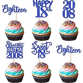 30 PCS 18th Birthday Cupcake Toppers Glitter Eighteen Happy 18th Straight Outta 2008 Cupcake Picks for Cheers to 18 Fabulous 18th Birthday Anniversary Party Cake Decorations Supplier Blue Perfect for happy 18th bithday theme party, straight outta 2008 theme party, 18th wedding anniversary theme party,cheers to 18 years theme party cupcake decoratio..