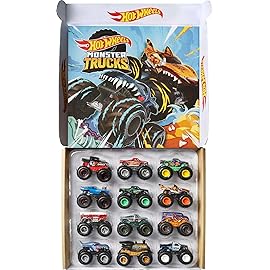 Hot Wheels Monster Truck 12-Pack of 1:64 scale trucks with GIANT wheels and awesome designs make crashing and smashing epic! Featuring twelve of the coolest trucks made since the brand began! Help kids jumpstart their collection with one easy-to-shop bundle of hand-picked winners. Delivered to your door in a special packaging execution designed to ..