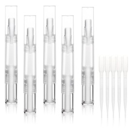 UPZIGS 5 pack 5ml Transparent Twist Pen for Cuticle Oil Applicator, Empty Nail Oil Pen with Brush Tip, Eyelash Growth Liquid Tube, Cosmetic Lip Gloss Container (5x)
