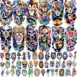 VANTATY 55 Sheets 3D Watercolor Temporary Tattoos For Women Men Adults Kids - Realistic Animal Print, Tribal, Floral, Halloween Designs - Multicolor - Waterproof - Ages 3+