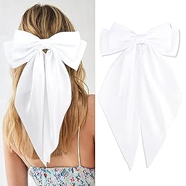 VELSCRUN Hair Bows for Women, 3Pcs Natural White Hair Clips, Big Hair Bows in Silky Satin, Oversized Long Tail Hair Barrettes, Hair Accessories, Christmas Gifts
