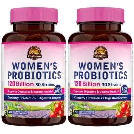 VITALITOWN 120 BILLION WOMEN’S PROBIOTICS Our probiotics for women contains 120 billion live cultures, 30 strains, water-soluble prebiotics fiber blend, broad-spectrum digestive enzymes, and organic cranberry extract.WHY CHOOSE US All In ONE Capsule 1 easy-to-swallow capsule contains 120 billion CFUs & 30 strains specially selected for women’s hea..