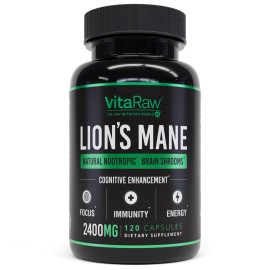 VitaRaw Organic Lions Mane Supplement Capsules 2400 mg - Powerful Nootropic - Helps Maintain Memory, Energy, and Mental Clarity - Vegan Brain Booster Focus Pills - Real Lion\'s Mane Supplement