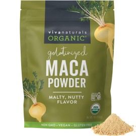 Viva Naturals Organic Maca Powder, Gelatinized, 16 oz (1 lb) - Vegan, USDA Organic, Gluten-Free, Non-GMO Peruvian Superfood in Resealable Bag