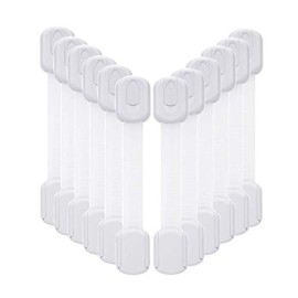 12 Pack Vkania Baby Proofing Cabinet Strap Locks - Child Safety Drawer Cupboard Oven Refrigerator Adhesive Locks - Adjustable Toilets Seat Fridge Latches - Kids Proof Kit - No Drilling